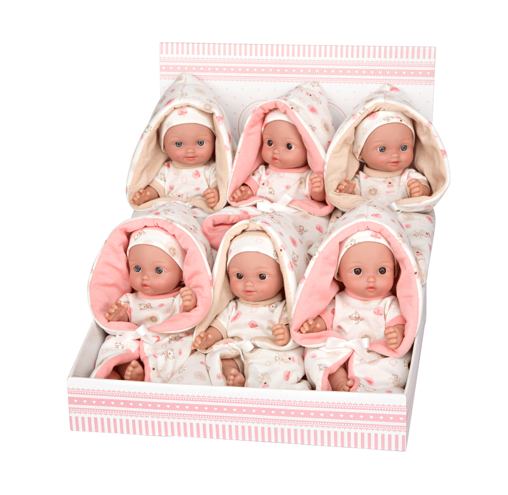 Sød elegance dukke - Calin er 26 cm. Dukke kommer i to forskellige farver, med sand eller rosa farvet tøj og med matchende tæppe. Dagene vil flyve afsted, mens de små leger med disse yndige dukker. De er babyer med en hård vinylkrop med et blødt touch og en mild vaniljearoma. Dukkens tøj og tæppe er kun lavet af højkvalitetsstoffer. Der medfølger et tæppe som tilbehør.